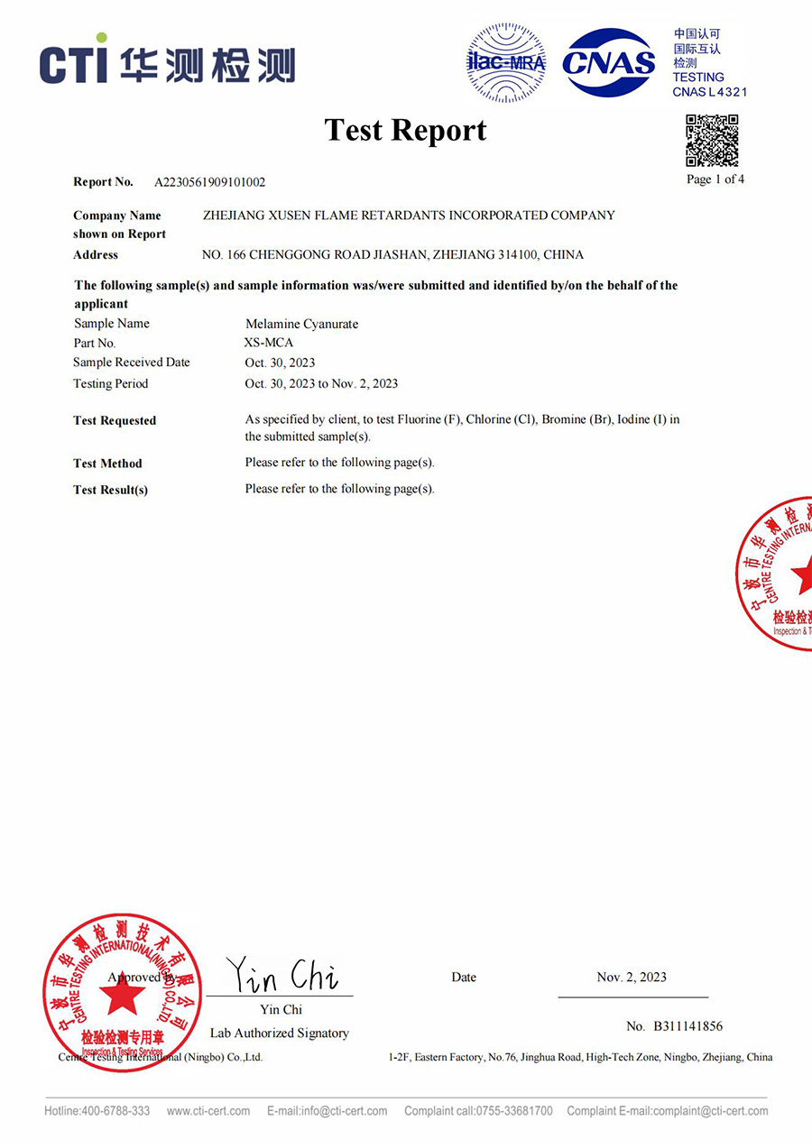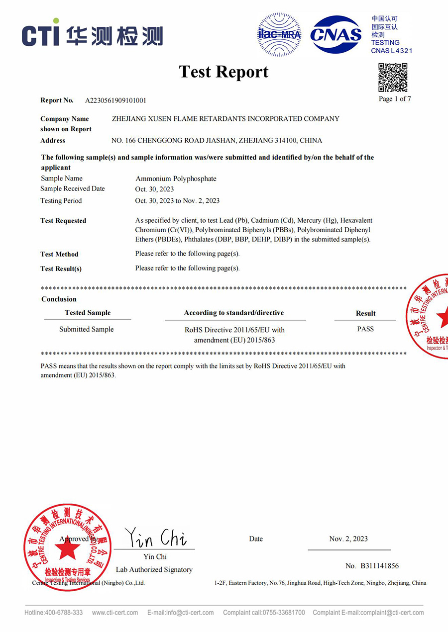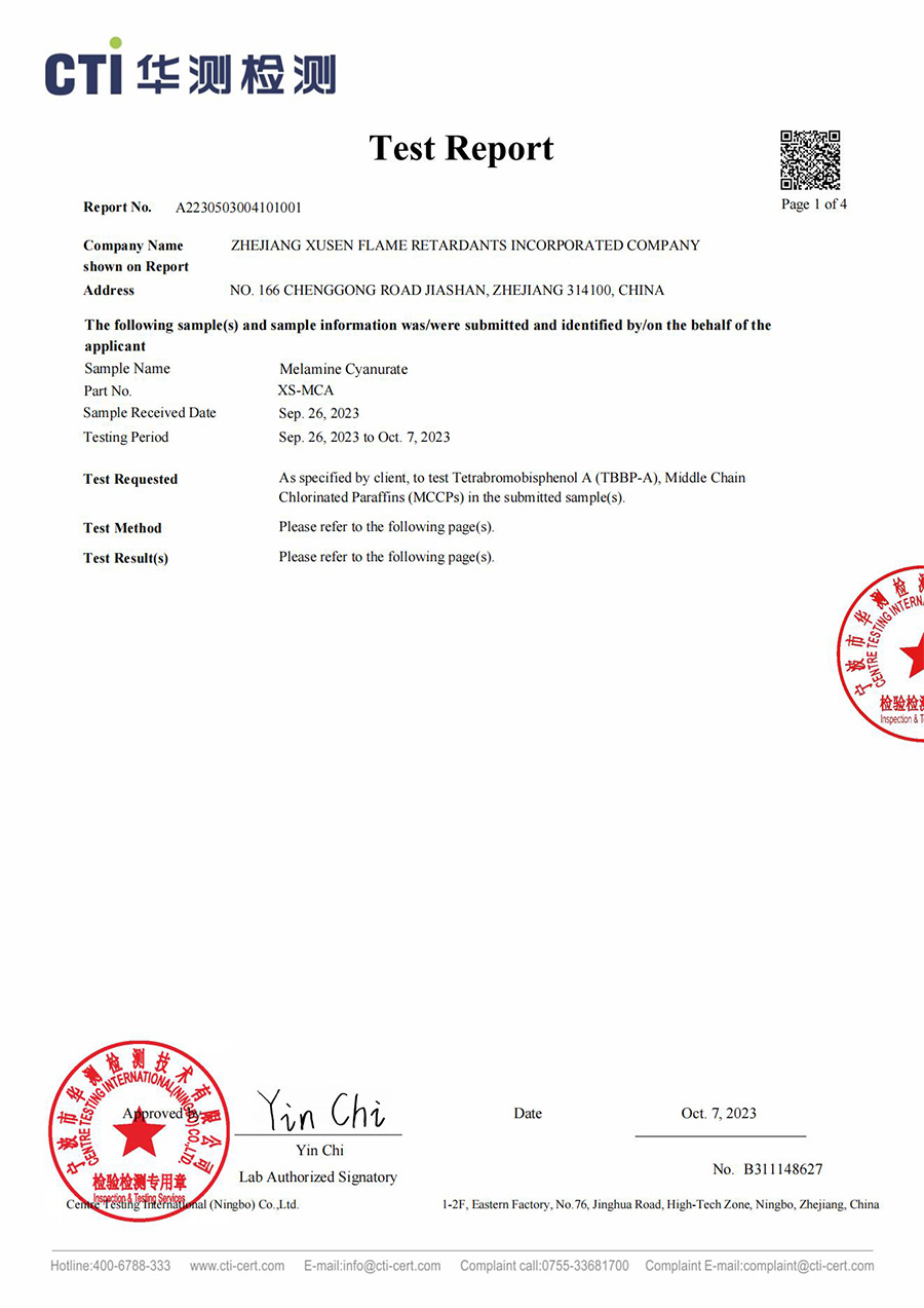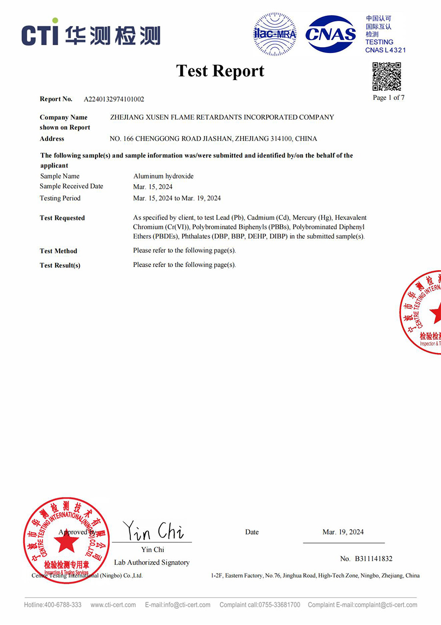 Vlamvertrager voor Polyolefin ROHS -testrapport