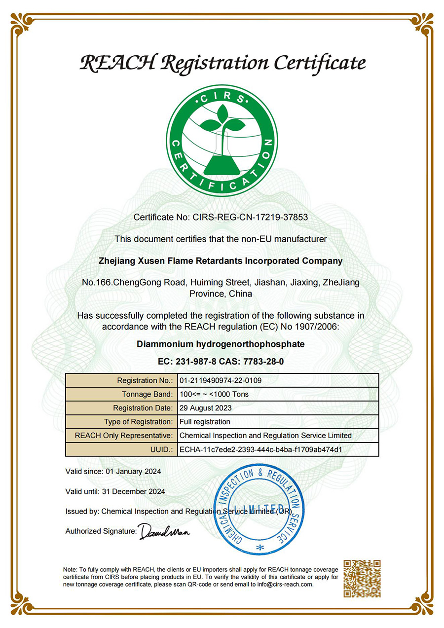 Diamine waterstoffosfaat bereik registratiecertificaat