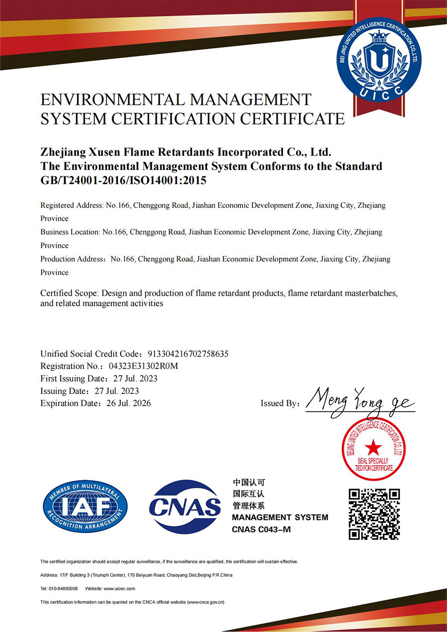 ISO14001 2015 Certificaat voor milieubeheersysteem